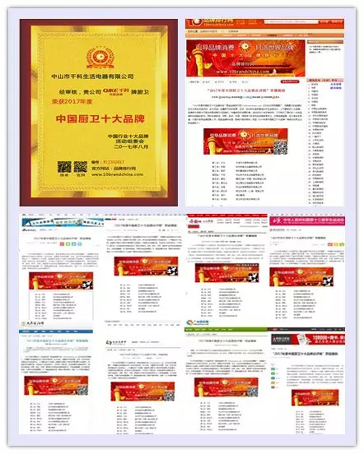 法國千科榮獲“2017年度中國廚衛十大品牌”